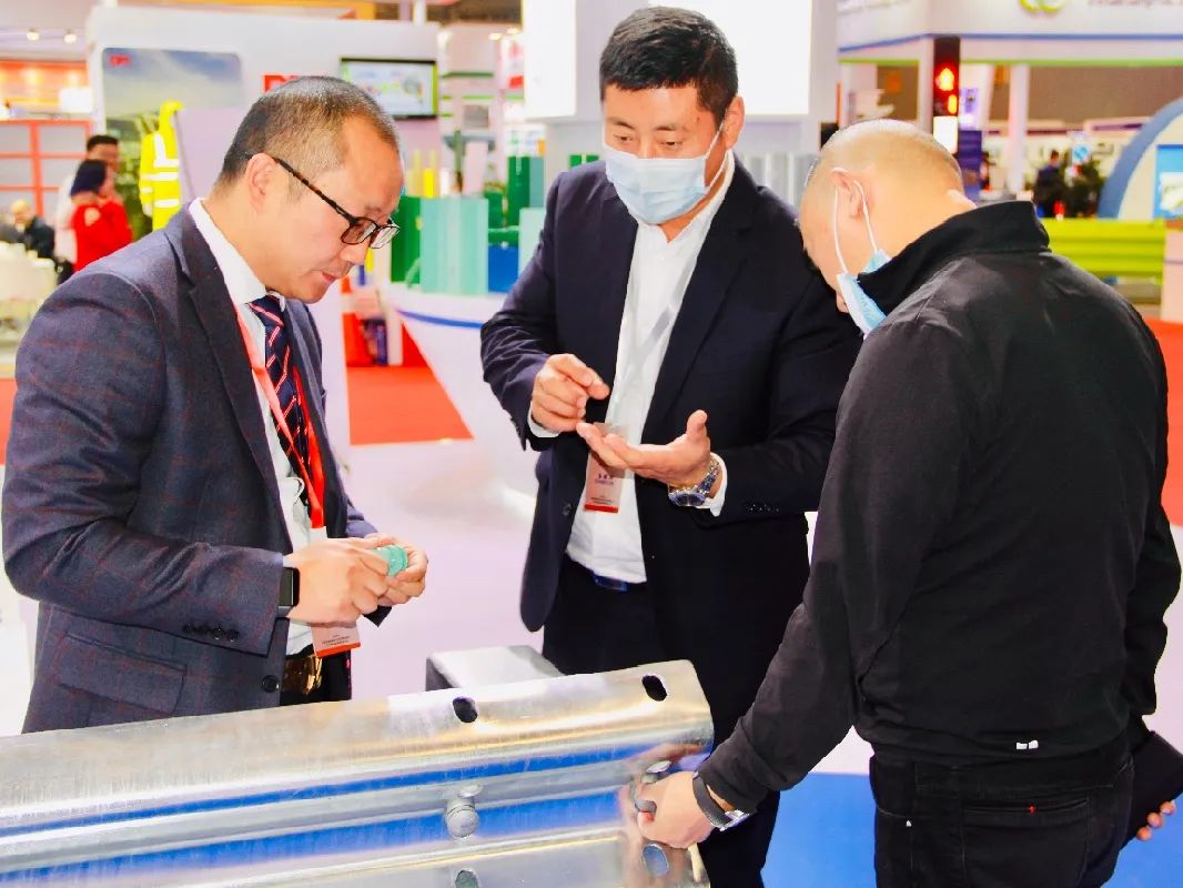 展會期間,天創(chuàng)管業(yè)全面展示了交通防護(hù)領(lǐng)域的各項產(chǎn)品,包括波形梁鋼護(hù)欄立柱、護(hù)欄板、防阻塊、柱帽、螺栓及其配件等。憑借多年服務(wù)于交通設(shè)施行業(yè)的良好口碑及領(lǐng)先優(yōu)勢,天創(chuàng)管業(yè)一經(jīng)亮相,就吸引了眾多行業(yè)人士的駐足,并引發(fā)現(xiàn)場參觀者及相關(guān)客戶的極大關(guān)注。多位中國交通運輸協(xié)會相關(guān)領(lǐng)導(dǎo)親臨天創(chuàng)管業(yè)展臺進(jìn)行視察,對系列展示產(chǎn)品給予了充分肯定。